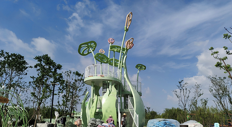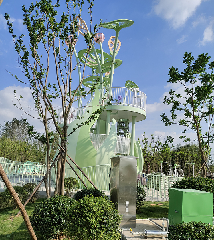 色彩豐富的游樂設(shè)施往往更受孩子們的歡迎,這也并非是萬能定律,并不是說把游樂設(shè)施設(shè)計(jì)成五顏六色的就是好的,也并不是這樣就會受到小朋友的喜愛了,要講究科學(xué)的色彩理念,注重視覺效果??梢灶伾r明,但不要過于花哨,這樣就容易引起視覺的疲勞,一些設(shè)計(jì)也會因?yàn)殡s亂無章的色彩而顯得俗氣。我們覺得設(shè)計(jì)師對色彩的掌控能力是這個(gè)作品成功與否的重要因素之一,顏色搭配得好就算紅配綠也未必就是不好的,互補(bǔ)的顏色搭配得好也是不錯(cuò)的。三原色的搭配也是比較常見的,兒童游樂設(shè)施的色彩應(yīng)當(dāng)與周圍的環(huán)境相互協(xié)調(diào),將游戲設(shè)施的色彩融合到周邊環(huán)境的色彩之中。加上優(yōu)美的造型和生動的形象才能受到更多小朋友的歡迎。