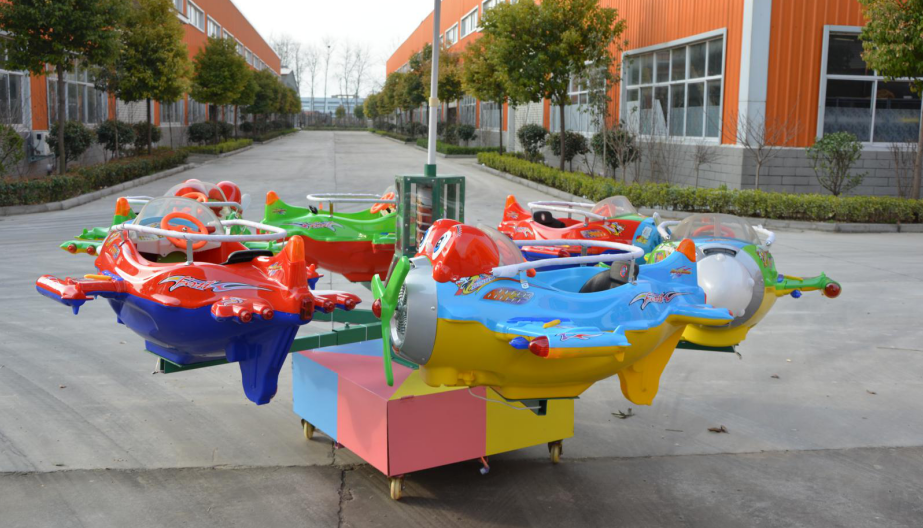 旋轉(zhuǎn)小飛機(jī)是一款電瓶帶動(dòng)的小型游樂(lè)設(shè)備。常規(guī)的有6個(gè)座艙。運(yùn)行時(shí)可以一邊旋轉(zhuǎn)一邊升降,伴隨著動(dòng)感的音樂(lè),絢爛的燈光。